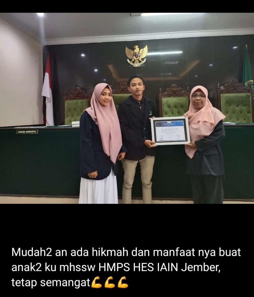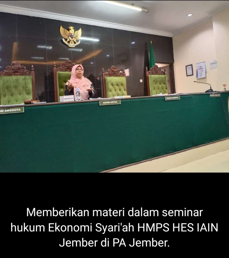 Pengadilan Agama Jember kembali mendapat kunjungan dari Mahasiswa dari Fakultas Hukum Ekonomi Syariah dari Universitas Institut Agama Islam Negeri Jember. Para mahasiswa yang didampingi Hakim Dr. Rizkiyah Hasanah, S.Ag, M.Hum sebagai Pemberi Materi tentang Implementasi Teori dan Praktik Hukum Ekonomi Syariah di era Revolusi Industri. Bliau juga memotivasi para mahasiswa untuk giat belajar dan berusaha mengejar cita-cita, dan jangan sia-siakan waktu dengan banyak berman-main.