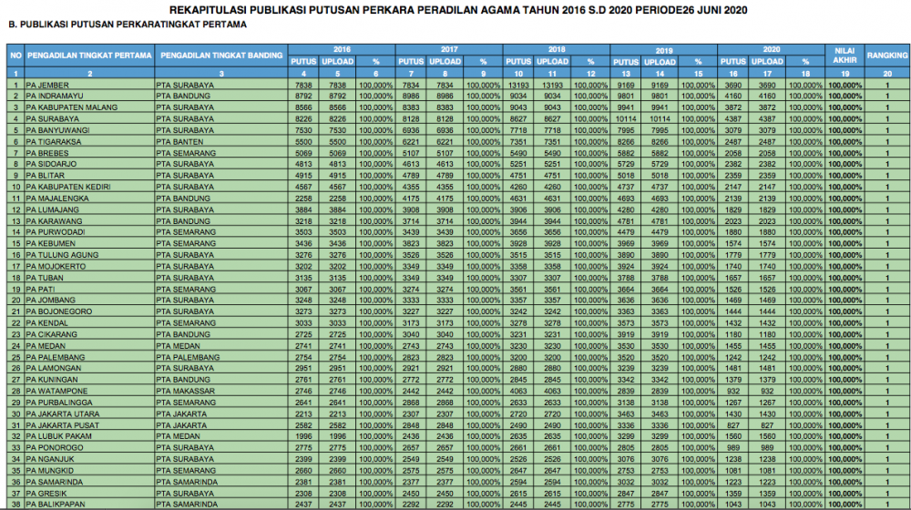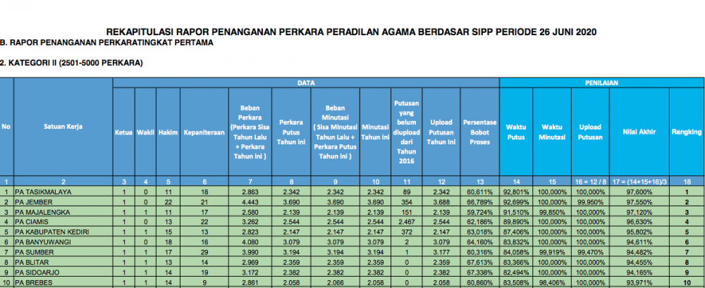 PA. JEMBER RANGKING 2 PENANGANAN SIPP DAN RANGKING 1 PUBLIKASI PUTUSAN
