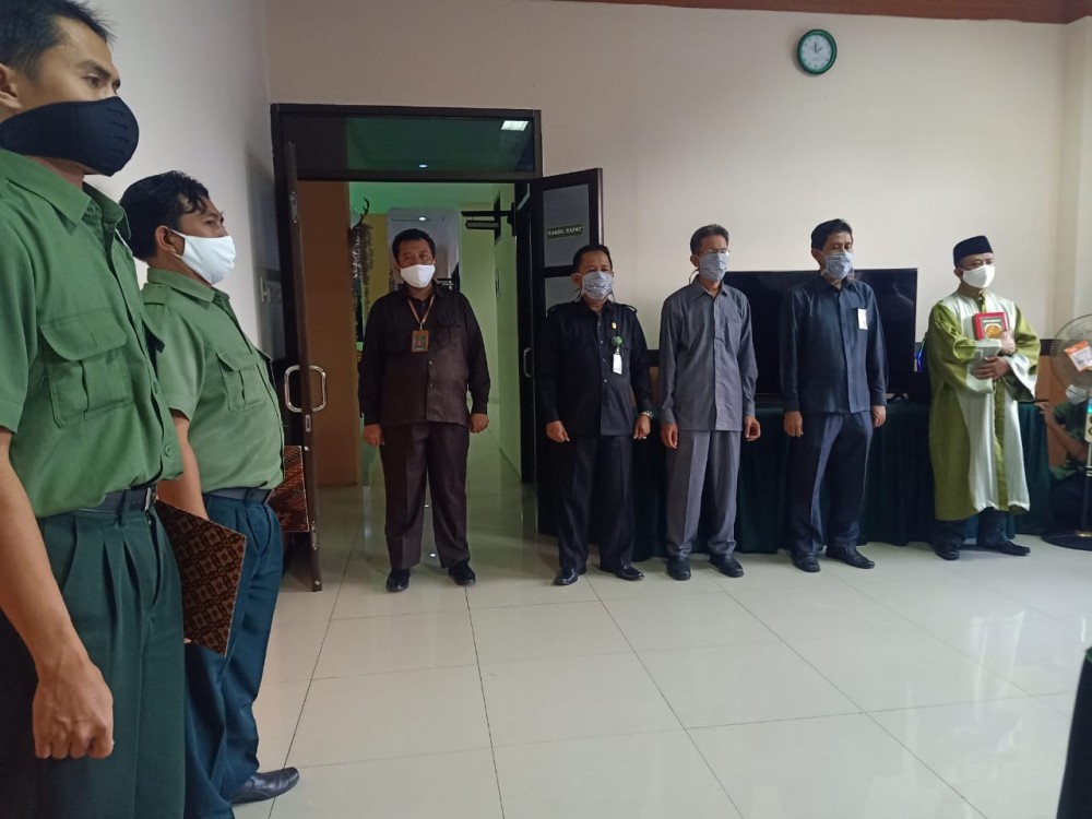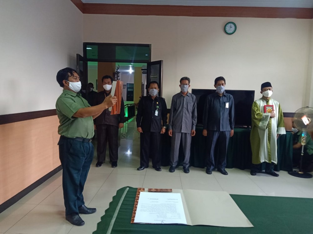 Selanjutnya Pembacaan kata-kata Pendahuluan Sumpah oleh Ketua Pengadilan Agama Jember Dr. H. Muslikin, M.H. dan sebagai rohaniwan Moh. Faiq Azmi, S.H., serta saksi-saksi A.M. Nuruzzaman Afifi, S.E., Samina Laela, S.E., S.H.