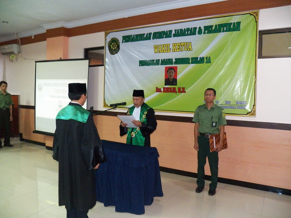 Pada hari Rabu tanggal 29 Mei 2019, Alhamdulillah setelah kursi jabatan Wakil Ketua PA Jember telah kosong selama 5 bulan, pada hari ini sesuai dengan Surat Keputusan Ketua Mahkamah Agung Republik Indonesia Nomor 74/KMA/SK/IV/2019 tentang Promosi dan Mutasi Hakim Tinggi, Ketua, Wakil Ketua dan Hakim pada Lingkungan Peradilan Agama. tertanggal 25 April 2019;