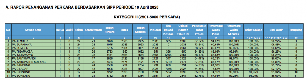 RAPOR KINERJA PENANGANAN PERKARA SIPP DAN PUBLIKASI PUTUSAN 10 APRIL 2020