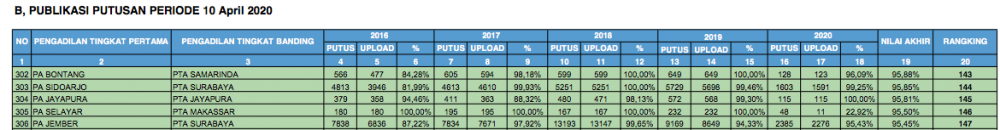 Rapor Kinerja Penanganan Perkara Berdasarkan SIPP dan Publikasi Putusan Tanggal 10 April 2020 Pengadilan Agama Jember masih tetap mempertahankan posisi rangking I dengan Nilai Akhir 98,22%.