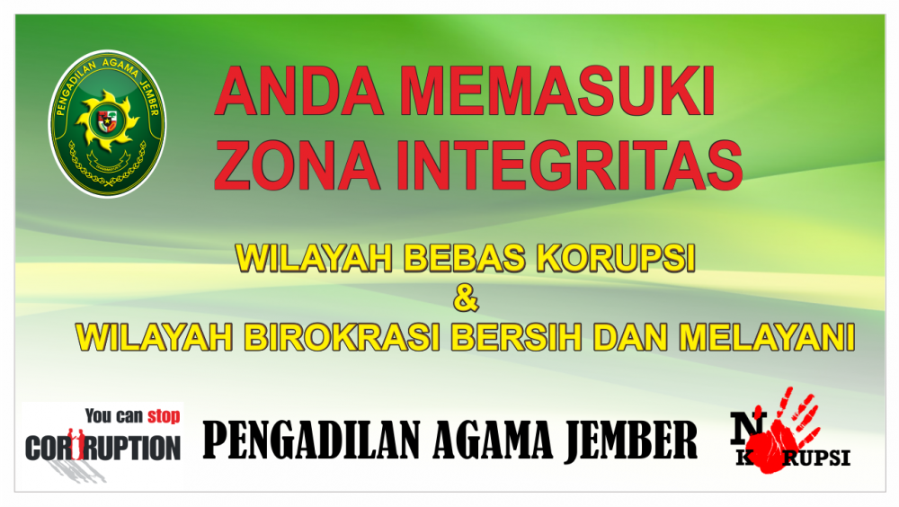 Pengadilan Agama Jember telah mendapat Penghargaan WBK ( Wilayah Bebas Korupsi) dari Kemenpan RB pada Tahun 2020